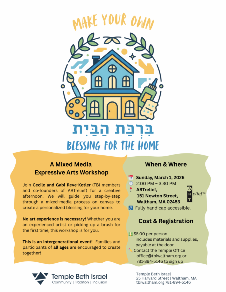 Temple Beth Israel is a vibrant, diverse, traditional and close-knit congregation. We are an independent synagogue that seeks to provide spiritual, social and physical access to and inclusion in meaningful Jewish life and tradition. We enjoy a full calendar of religious, social, educational and social justice dialogue and activities for the many ways our congregants and friends connect to Judaism, to their community, and to the world at large. With a 100+ year history in Waltham, on any given day we find members who were born into Temple Beth Israel warmly embracing newcomers.