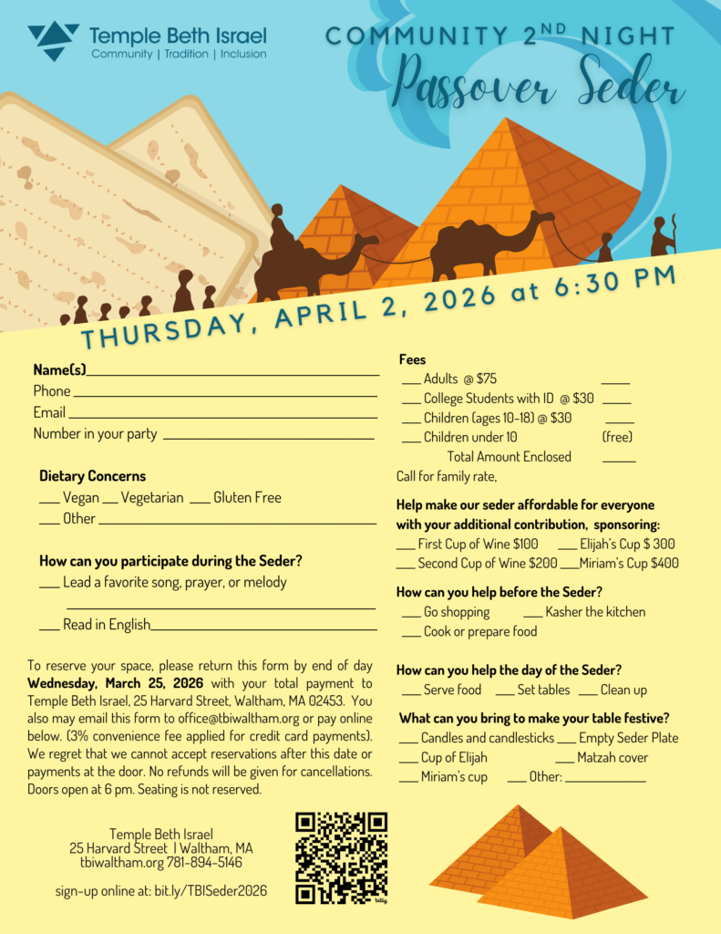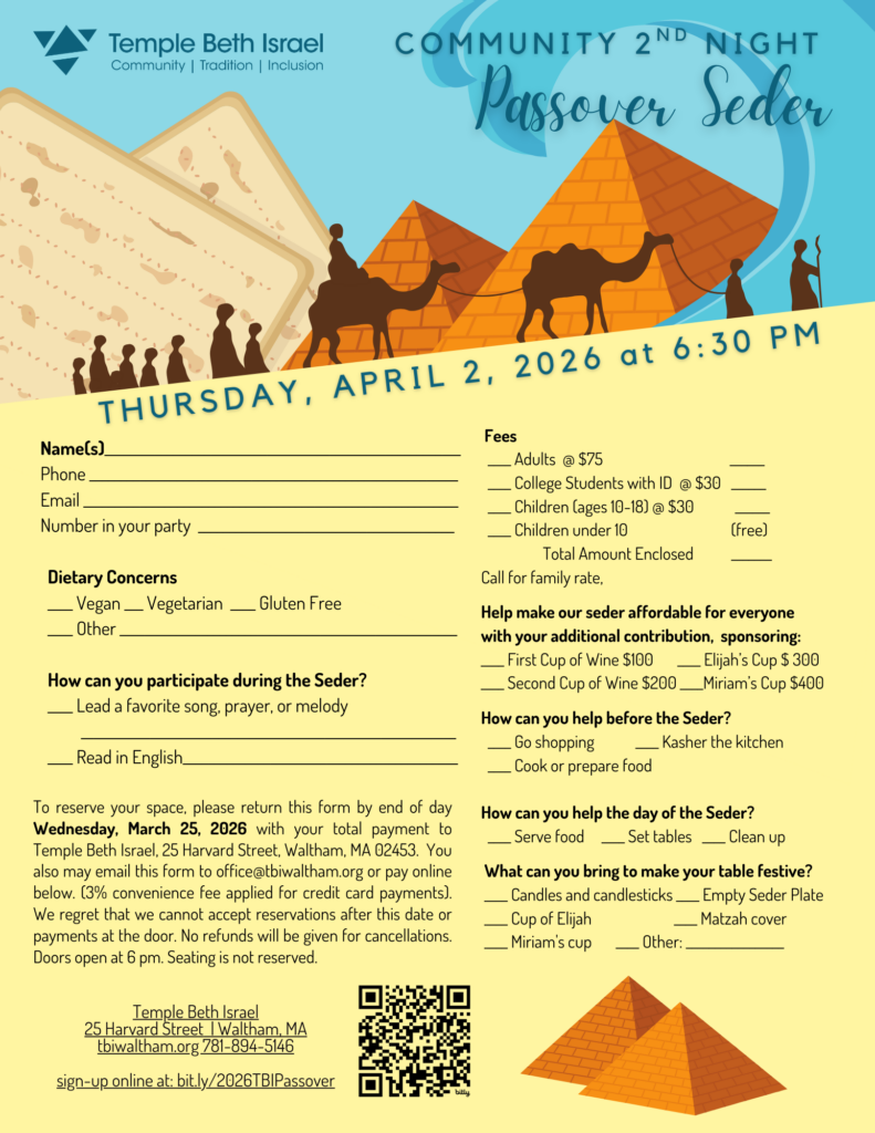 Temple Beth Israel is a vibrant, diverse, traditional and close-knit congregation. We are an independent synagogue that seeks to provide spiritual, social and physical access to and inclusion in meaningful Jewish life and tradition. We enjoy a full calendar of religious, social, educational and social justice dialogue and activities for the many ways our congregants and friends connect to Judaism, to their community, and to the world at large. With a 100+ year history in Waltham, on any given day we find members who were born into Temple Beth Israel warmly embracing newcomers.